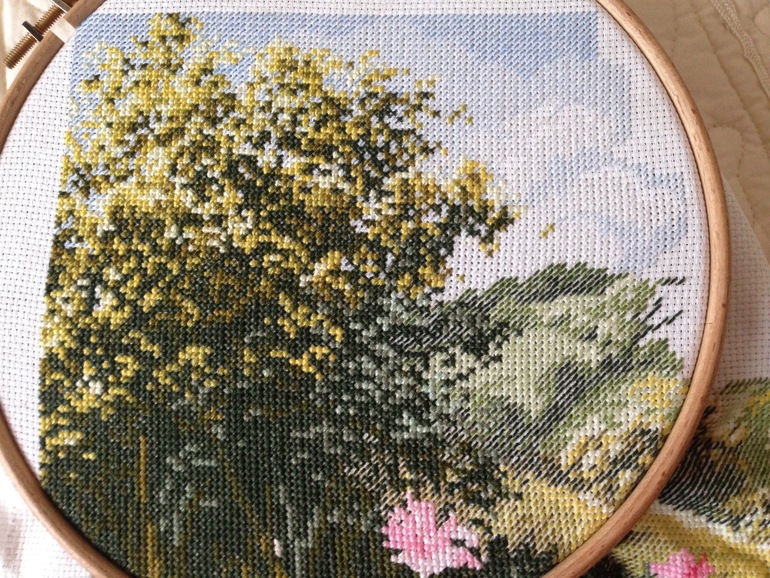 Красивый пейзаж! Вышиваешь хорошо. Говорила одиночек дальше не будет, а дерево то все рябое.