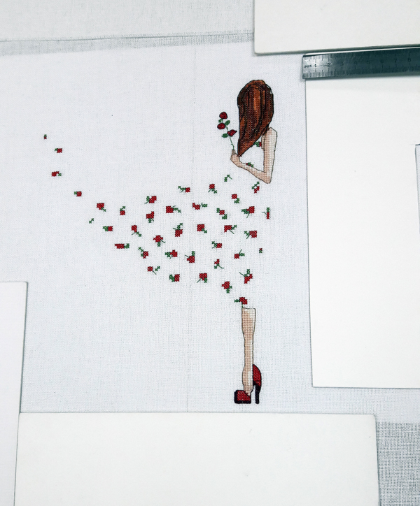 Я, как и обещала себе и вам, на этой недельке экстренно закончила свою девушку в платье из роз по схеме от Ворожеи. Вернее, вышивала я ее всего три дня, в пятницу в бреющем полете сдала в багетку, прыгнула на электричку и умчала на дачу. А вот из багетки ее забрал муж, который мне ее завтра отдаст перед вручением имениннице. Так что, в готовом виде я ее не видела))) Хорошо, что пока раму подбирала, меня осенило сфотать на телефон, так что вот, рабочий процесс в багетке:
