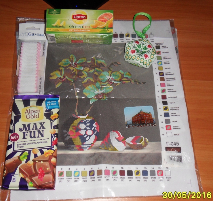 А еще я получила конфетку (спустя 3 месяца) в игре на другом сайте и очень этому рада (там канва для вышивания бисером лилии).
