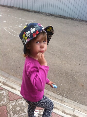 Совсем забыла, еще на недельке сшила дочке панамку ( громко не смеяться, я еще только учусь)