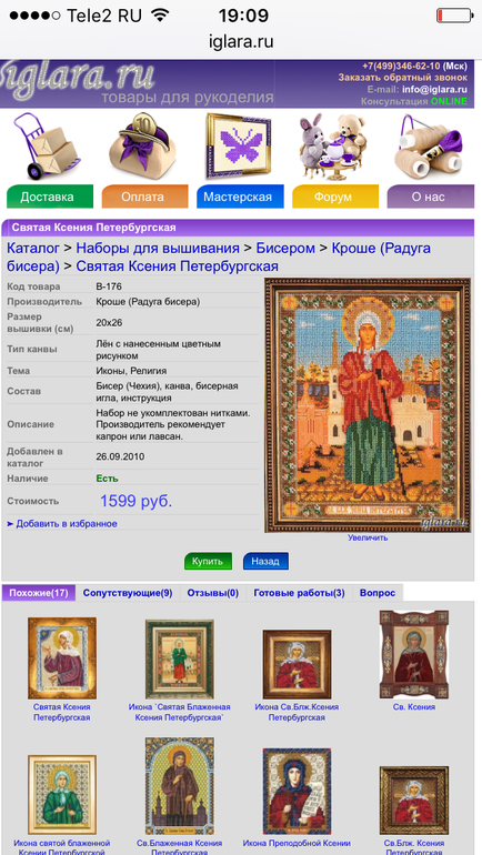 Купила рамку под неё, под её код В-176!