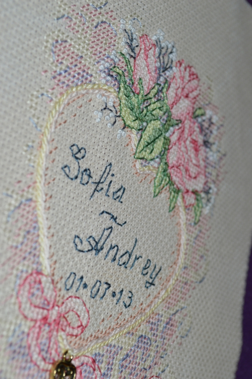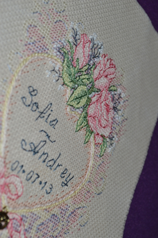 Решила я вышить самой старшей (двоюродной) сестре метрику на годовщину свадьбы. Во время работы поняла, что вторая старшая сестра может на меня обидеться, что ей подарок такой не достался. Несколько дней поисков подходящего в интернете и я держу в руках распечатанную схему от Дим.