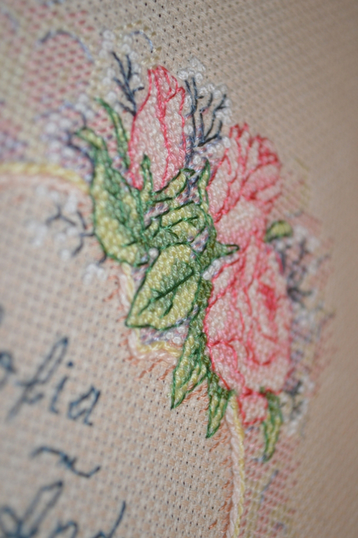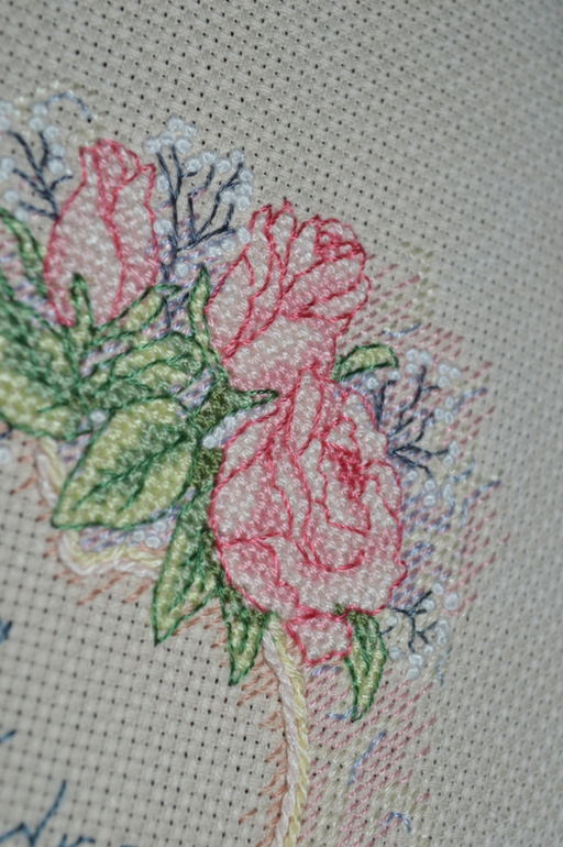 Мне очень понравился процесс работы - все такое нежное и приятное. Розочки будто аппликация. По достоинству оценила Димовский бек - муторно, но с вырисовкой всех деталек. Затруднения вызвала техника "Коучинг" или выкладная нить - я вроде справилась сойдет для первого раза.
