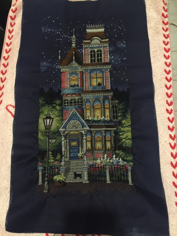 На стройку ушло полгода , но вышивала не каждый день и было такое что просто ленилась , но тут начался СП здесь и я взялась за домик , последние крестики вышивались быстрее , видишь результат начинаешь больше стараться )