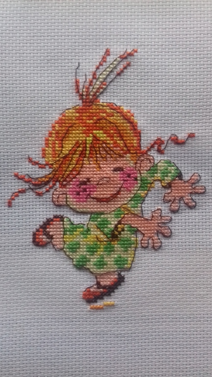 Работа " Клара" от Алисы, размер 11*14, нитки и канва из набора. Такая прикольная девочка получилась, мордашка такая смешная, чудная, смотрю на нее и веселее на сердце.