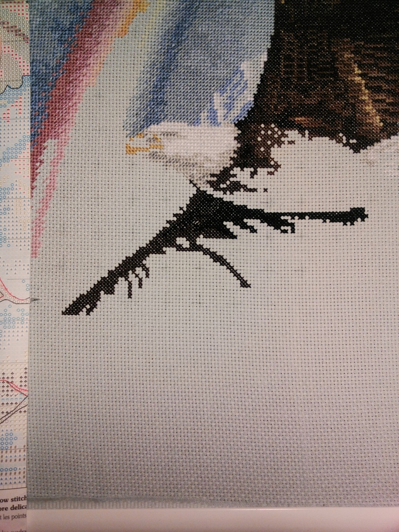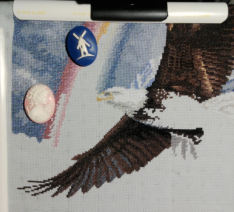Девчули, привет! Я сегодня коротенько)). Неделя прошла галопом, но благодаря прохладе, воцарившей над городом, мне удалось немного повышивать. Дорисовала орлу крыло).