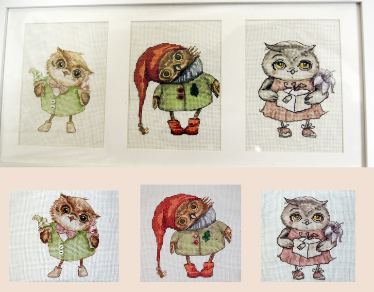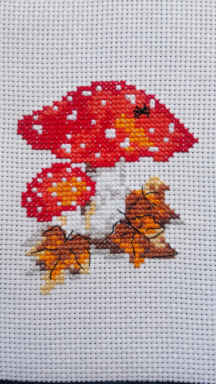 Совенка, что на синем, я тоже вышивала) Хорошенький, не смогла пройти мимо) Эту панновскую серию очень люблю, хотя вышивала только кошек из неё. Мухоморчики такие ... осенние.