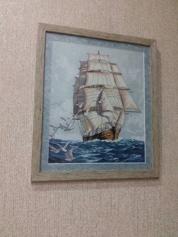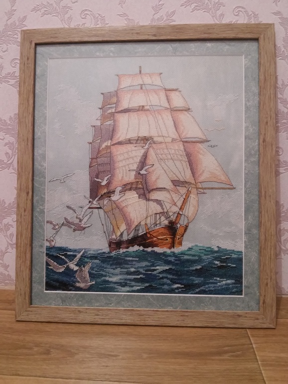 2. парусник Дименшенс. вышит по ключу, канва винтаж дмс. размер 35*40 см