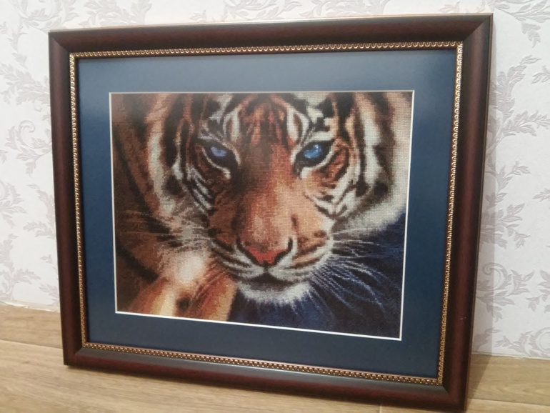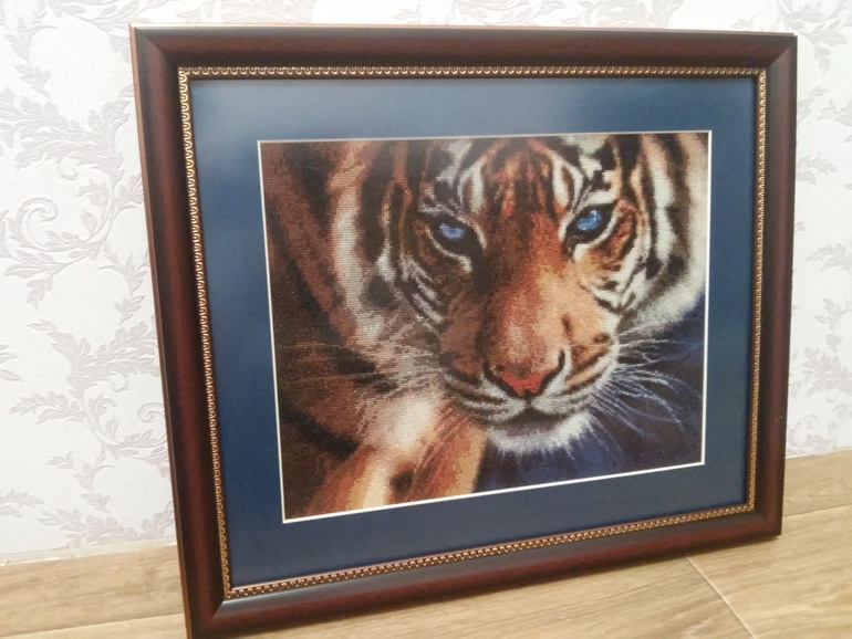 Вышивка крестом ГОТОВЫЕ РАБОТЫпривет! сегодня забрала свои работы и очень уж хочется вам их показать. фото под кат, но фотограф из меня не очень... 1. Голубоглазый тигр, вышит по набору Кастом крафтс, размер работы 30*35 см. около 4 месяцев в рамках ВД.