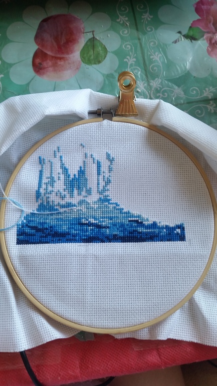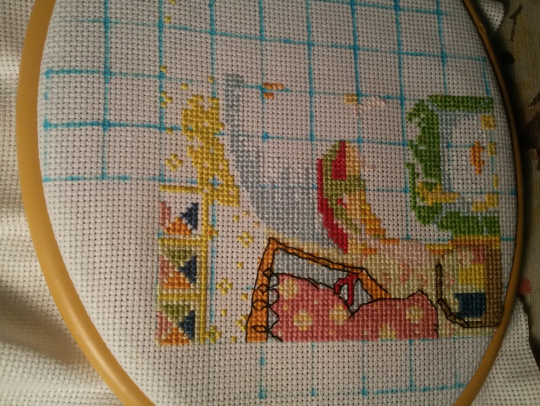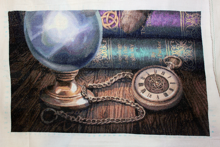 На данный мосент отшила примерно треть. В последнее время никак не могу себя организовать и сесть за вышивку. Сейчас все застопорилось на этом этапе.