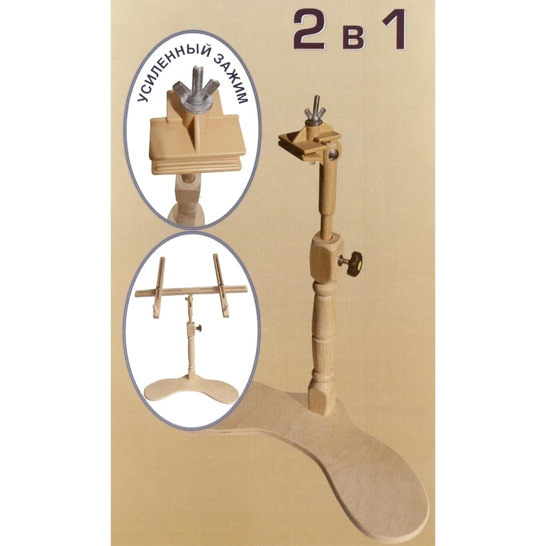 в комплекте идет еще зажим для пялец (его я не нашла, поэтому фото приложить не могу), но все таки вот такой вариацией этого станка пользоваться удобнее. Опять же данный станок регулируется только по высоте, но можно поменять длину самих держащий балок.
