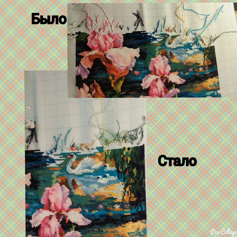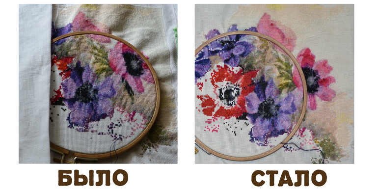 По вышивке: наконец взяла сегодня себя в руки и немного повышивала. Было/стало