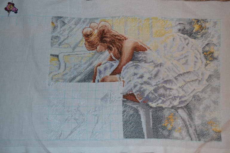 Остался только любимый бек. Очень много бека, но пока я не выбрала и не купила ниточки для него. Так что временно отложу и завтра начинаю дальше шить свою фею. Которую я не вышивала с апреля.
