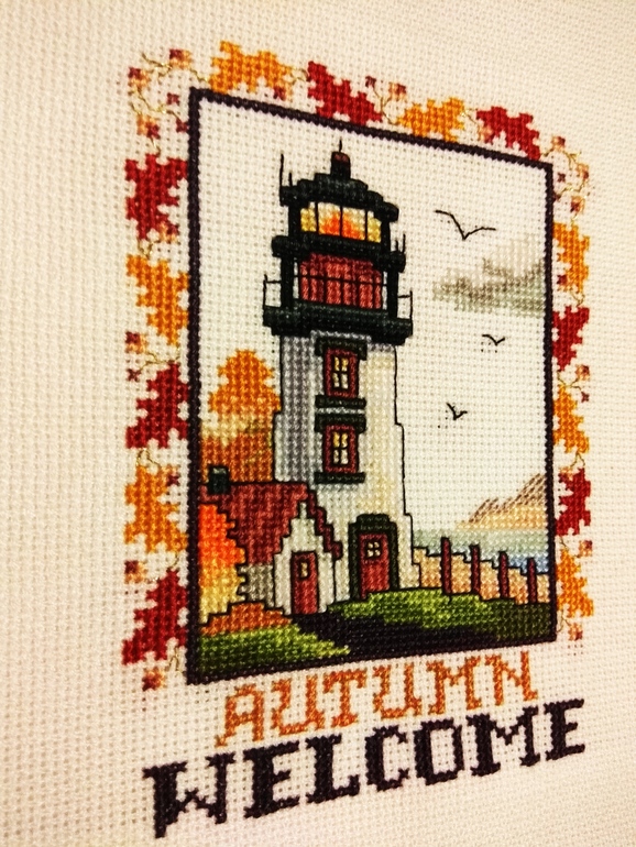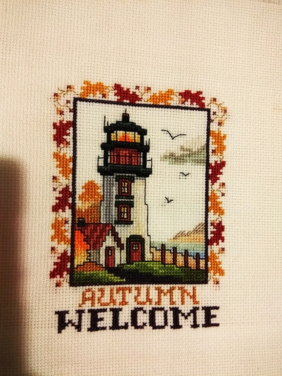 Ещё я закончила осенний маяк! Побежала стирать и.... увидела, что не вышила рамочку) она там бэком в 1 ниточку. А может это и к лучшему: вдруг рамочку подберу впритык