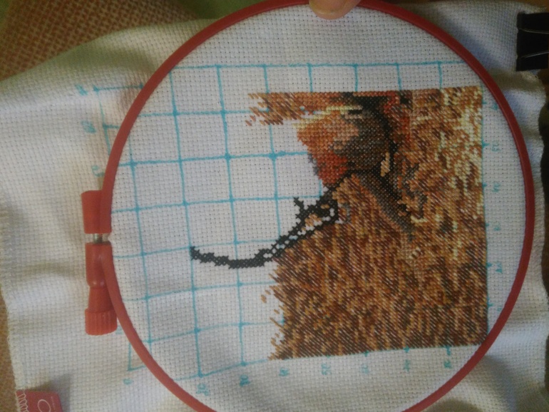 Продвижения у меня скромные, вечеров практически нет, маму перевили на другой режим работы, теперь у меня после работы времени практически не остается, забираю детей, завожу домой кормлю, оставляю мужу присматривать, собираюсь, еду за мамой, забираю ее в 19:00, едем домой, пока приехали, чай попили,уже дело к пол девятому, моем детей и спать, так что на вышивку только выходные, а там домашние дела, как и у всех никто не отменял.