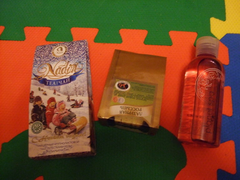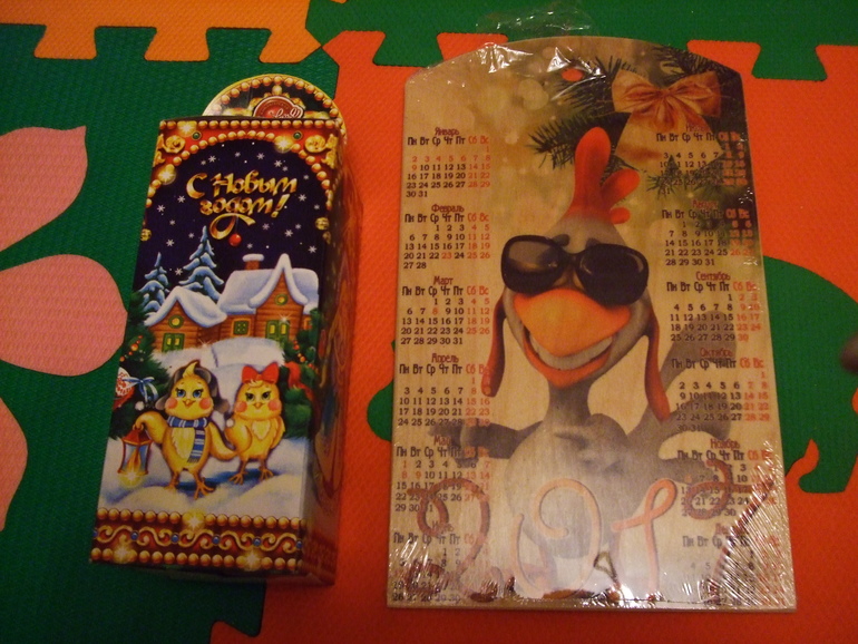 Для радостей души и тела приехал чаек, конфетки, масло и прикольная разделочная доска с символом наступающего года.