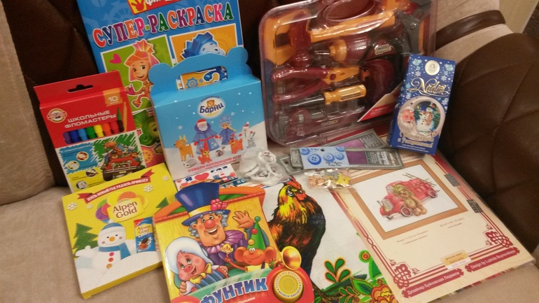 Обмен подаркамиВчера получили подарочек от Незабудки! Сына так торопился его открыть! )))) Как чувствовал что там для него много подарков )))
