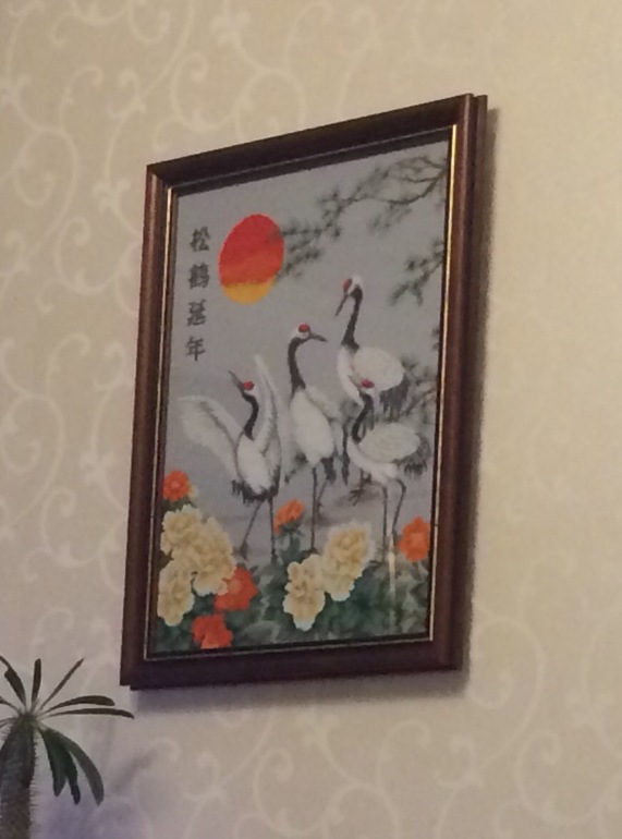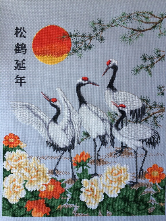 После этого был Журавлиный рай от pinn по схеме из инета. Немного подправила один цвет в зелени, тк в оригинале мне не понравился. И спасибо совместнику "Мечты сбываются", вышился тоже за 3 месяца