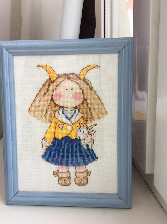 Первой была милая козерожка от Неокрафт. Очень мне понравилась эта серия, планирую еще что-нибудь из нее вышить в этом году. Плюс это был мой первый (и очень положительный) опыт на равномерке