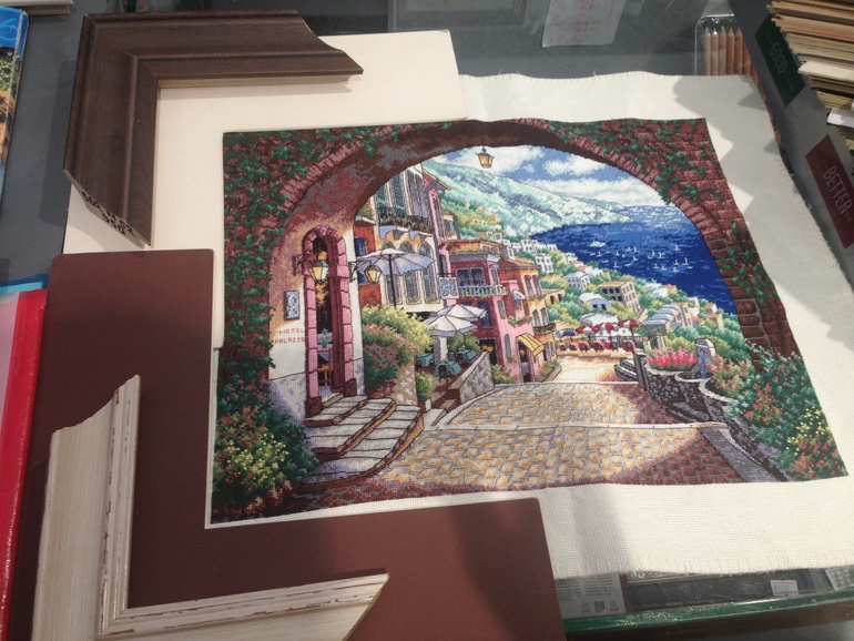 Вышивка крестом ГОТОВЫЕ РАБОТЫВот и готов мой Costal view от Dimensions, процесс получился долгим, вышивала я ее целых 5 месяцев, ещё месяц она была на оформлении, т.к. в багетке закончился выбранный мной паспарту. И вот спустя полгода с начала вышивания работа готова, хочу поделится с вами: