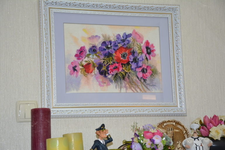 Вышивка крестом ГОТОВЫЕ РАБОТЫПосле повторного посещения багетки ( был брак по натяжке вышивки) ко мне вернулись мои анемончики!