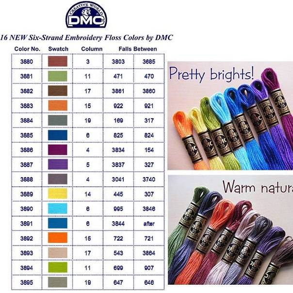 Девочки, обращаюсь к вам. Купила авторскую схему, в ней используются новые цвета нитей ДМС. Аналоги нашла почти ко всем, кроме цвета 3890 (голубая бирюза). В схеме написано, что можно заменить на 3004 ПНК или 3123 ГАММА. У нас в магазинах нет нигде. Попробовала сделать бленд по таблице, получается не то. Может у кого есть лишний моточек? Могу поменяться на магнитик для иголочек ручной работы