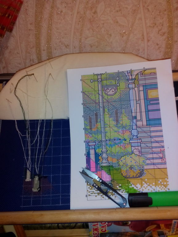 Я ложу на диван, так как маленький ребенок, порой приходится работать оперативно, самое долгое вышивала 2 месяца. Ну там и размер внушительный.