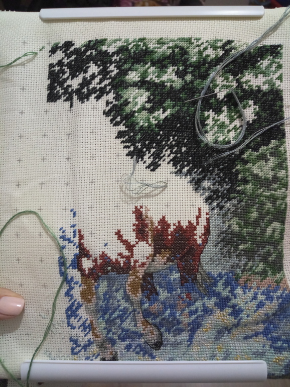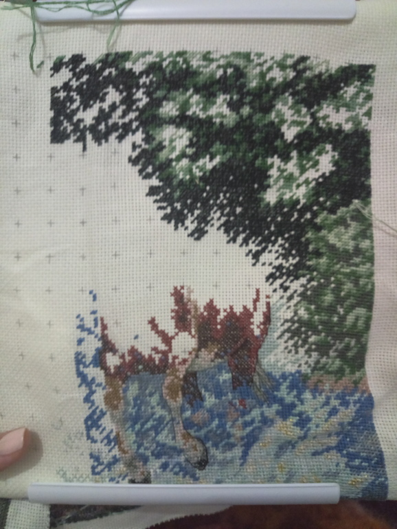 Это на чем я остановилась. За эту неделю вышила совсем чуть-чуть, но для меня сейчас главное хоть так вышивать, а не совсем забросить