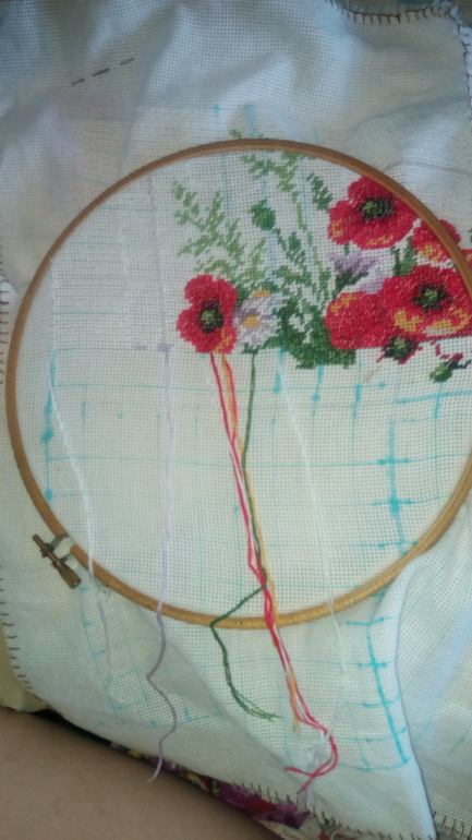 немного цветочки доделать с правого краю. На неделе этой занималась детьми. Заболели оба: кашель, горло и насморк. Так что оба дома со мной. А сейчас и я немного приболела. Тоже горло. Также продолжаю занятия по восстанрвлению своей фигуры ( был большой перерыв в спорте из за болезней после родов). Сейчас разбираюсь с питанием и физ. нагрузками. Хожу на танцы еще;)
