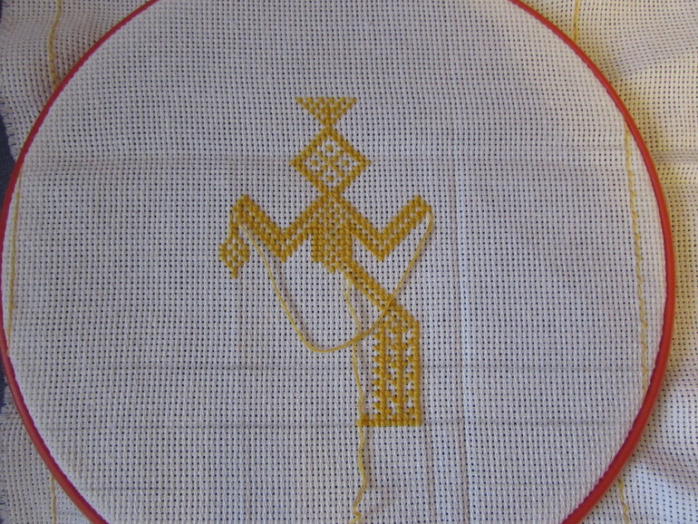 В таких масштабах не заметно, но вышито 350 полукрестиков.