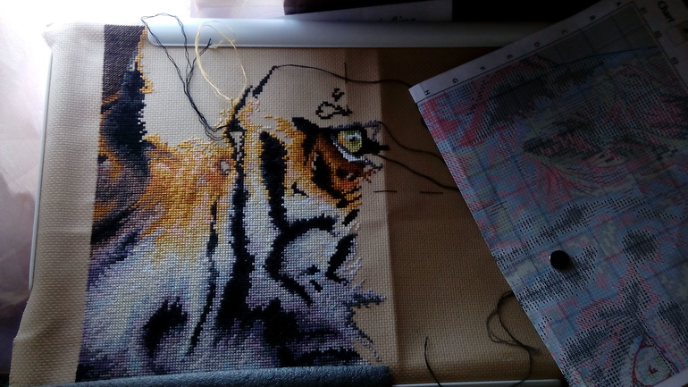 продвижение есть, а вот я обещала показать свою вышивку с тиграми, фото из инета