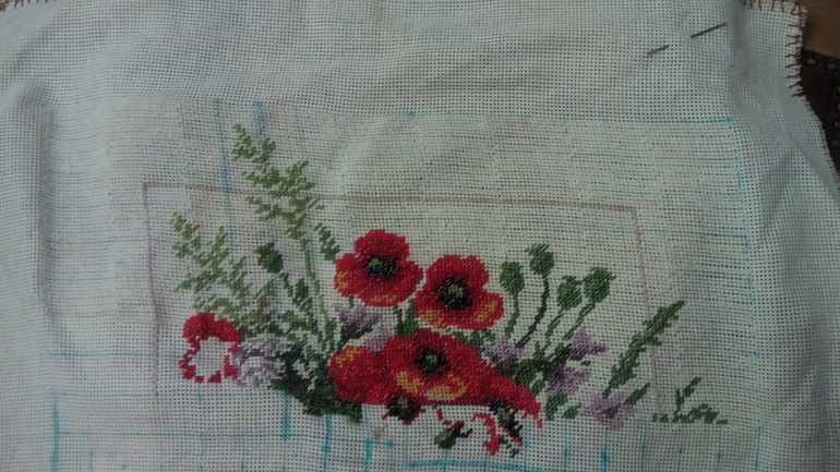 Долго искала что изменилось, за лошадью серый фон увидела. Хорошая работа. У меня тоже маки полукрестом из 4 нитей только.