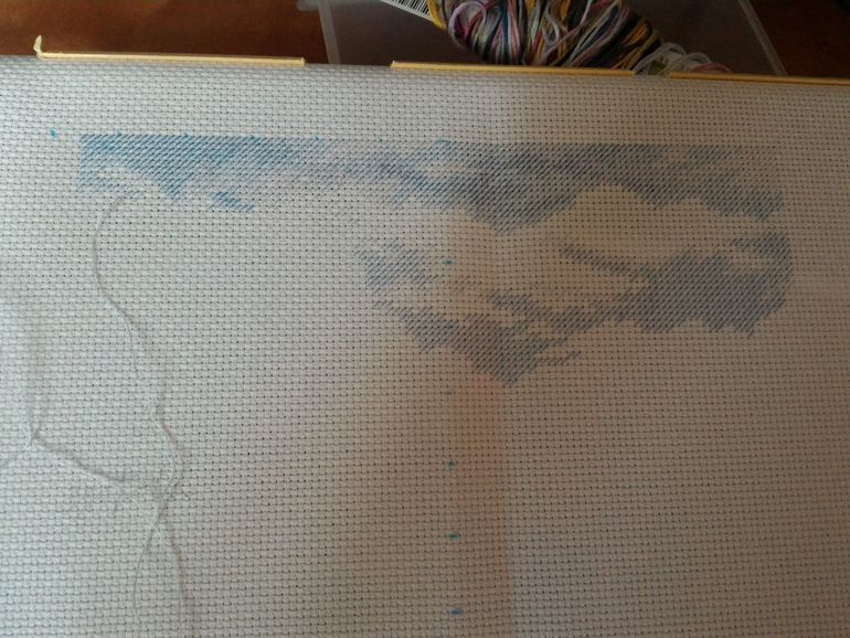 Всем привет;) я не быстро начала свой маяк;) Написала на нем желание и начала зашивать;) Девочки какой же он нежный....в 1 ниточку все. Прям дунуть боюсь на него.... Я не люблю размечать канву и была пара косячков не больших....перешивала эти участки.