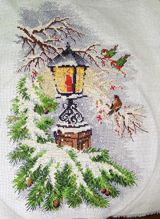 Вчера наконец-то закончила мой "Зимний фонарь"! Надеялась, что окончание этой работы с подвигнет зиму сдать свои позиции окончательно... Не тут-то было! 😥