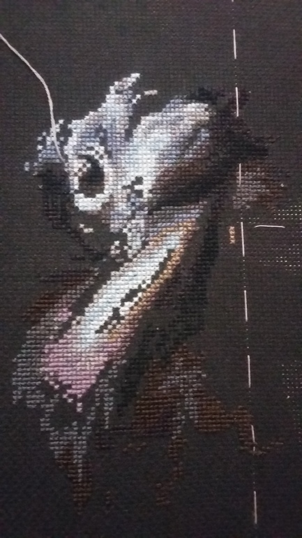Вот по вышивке не очень продвинулась. Собиралась закончить но не тут то было . Вот фото до