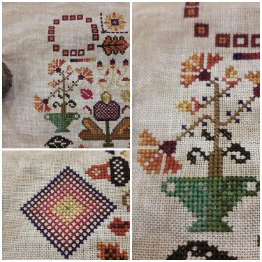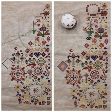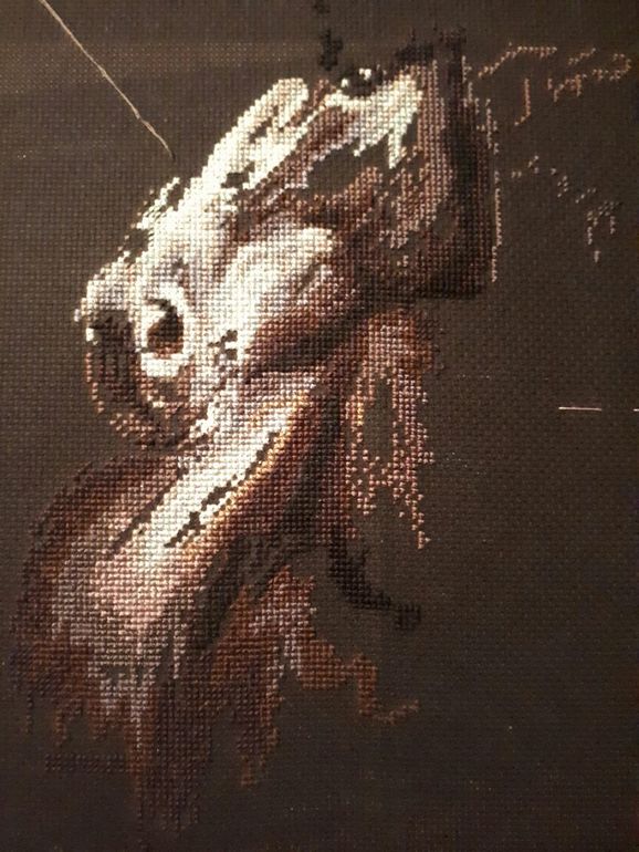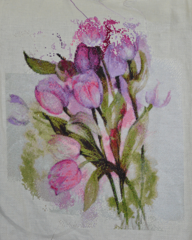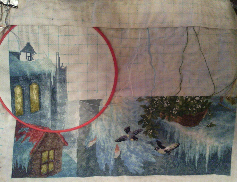 По вышивке: дошила я все крестики, даже успела немного "побэчить", но с трудом идет( схема бэка не очень удачная и я невнимательная, нет-нет да напутаю - распускать приходится.