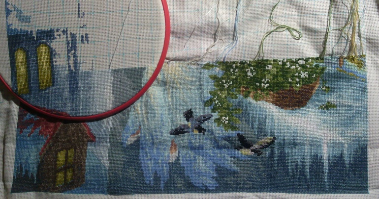 Ну дальше теперь вернусь к своей вышивке "Мельница в весеннем лесу".