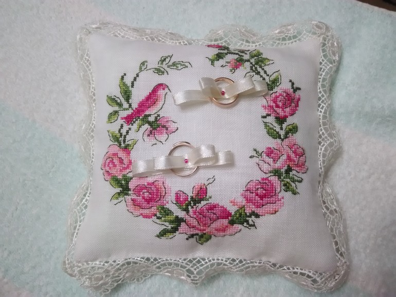 Ой, девочки, наконец-то я доделала подушечку для колец. Вот прям до конца. Сегодня ее уже даже передала.