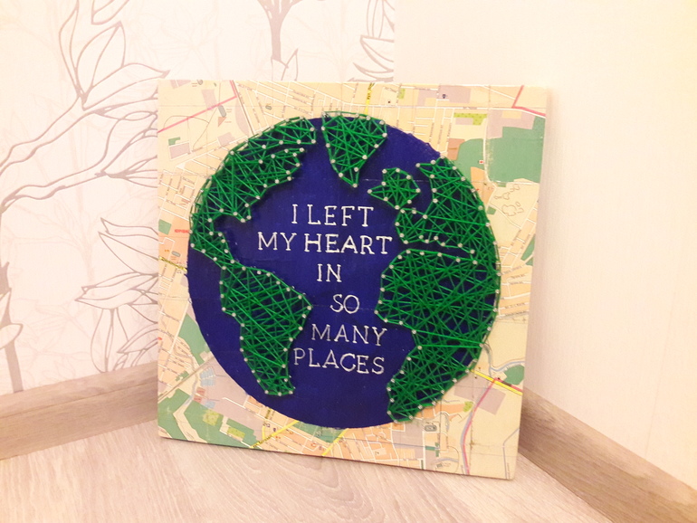 .Сын пилил,зашкуривал и вбивал гвозди,ну а я клеила,красила и плела нитки.