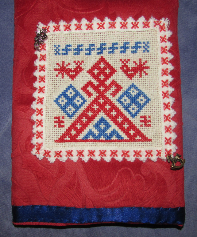 Довышивала я Рожаницу, и уже отправила, и девочка, которой она предназначена, ее уже получила) Оформила я ее на обложку для блокнота. Обложка съемная, мягкая, ее можно и под подушку и на подушку, и, если захочется, то вообще переделать в подушечку))