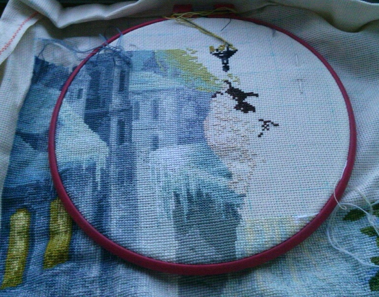 наивная, но все мои мечты разбились об наши замечательные российские дороги. Вышивать у меня не получилось, вымучила одну ниточку и перестала издеваться над вышивкой и глазами. Поэтому продвижения мои неважные. Это до: