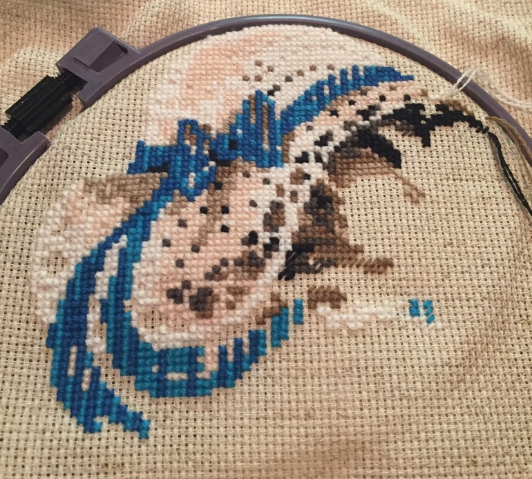 И хоть до конца мне как до луны, я все равно рада, что я вообще вышиваю. Получается только одна или две ночи в неделю, если не падаю сразу в кровать - маки живут на даче, а там же и дите, и родители, и работы в саду-огороде немеряно..