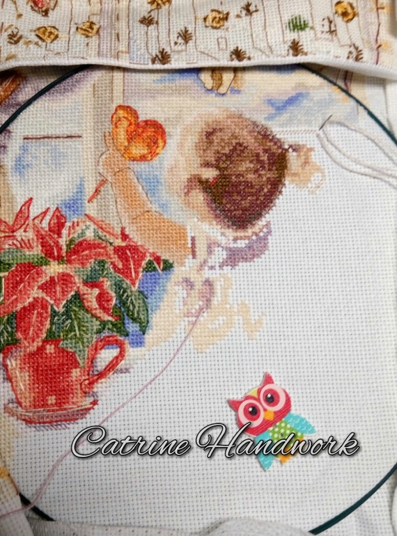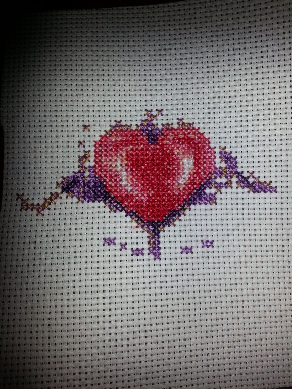 Также готовлю к оформлению подарок для мужа на новый год. И там нужна небольшая вышивка. Вот пока только начала. Но сердце уже пылает)