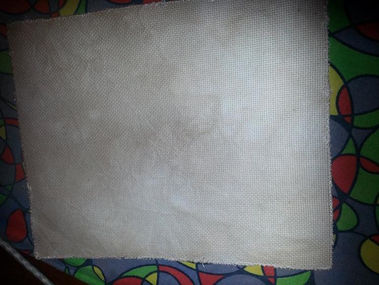 И ещё захотелось вышить что-то хэллоуинское. Пока ещё только определяюсь с вышивкой, но канву уже покрасила. Захотелось, чтобы было так. На фото какой-то серый оттенок, но на самом деле коричневатый, красила чаем и корицей.