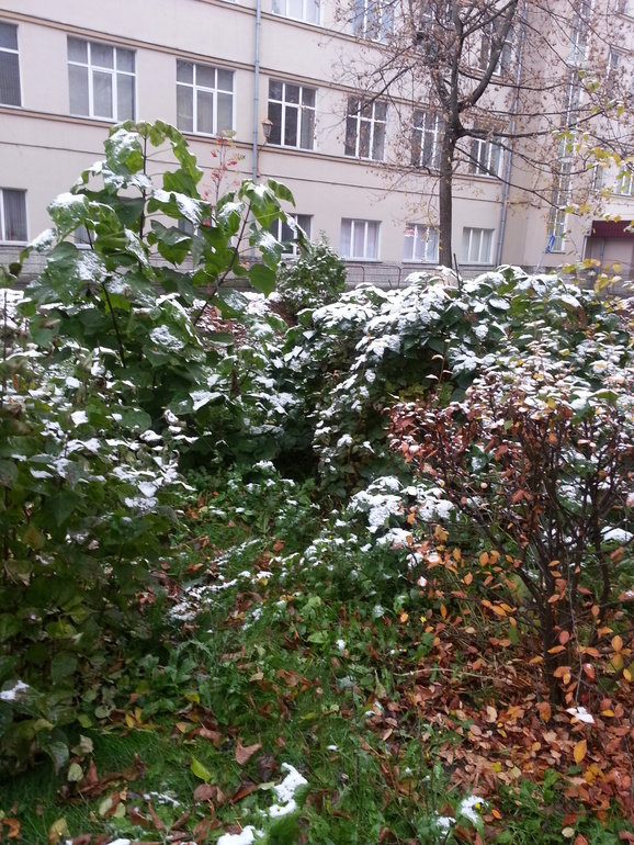 Привет! У нас закончилась красивая и тёплая осень. Вот уже два дня по утрам лежит снег, а днём летают "белые мухи".
