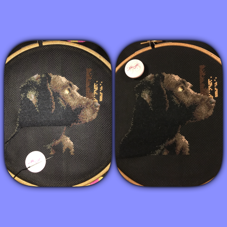Собаку довышивала (черное на черном😫) приступаю к окну, там цвета интереснее!