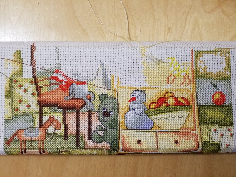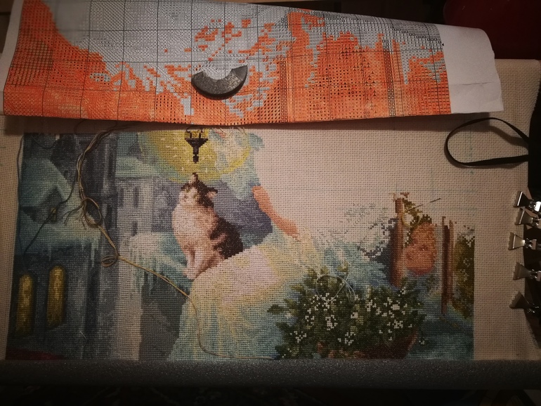 Вышивала мало, в очередной раз выслушивала от мужа какое это бездумное занятие вышивание и как я убиваю время вместо того, чтобы заняться полезными и интересными вещами. Уже просто пытаюсь мимо ушей пропускать, но все равно обидно все это слушать (
