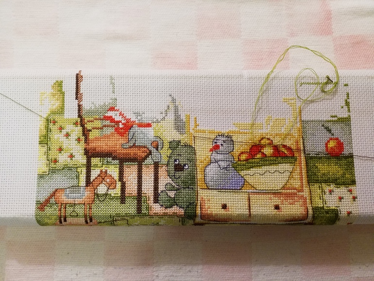 Погода тоже особо не радует и на работе пока завал. Поэтому навышивалось тоже не много, вышивка двигалась только в субботу и воскресенье