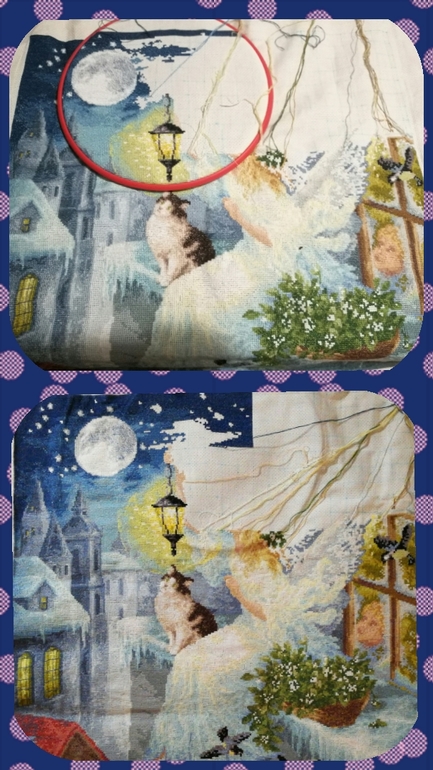 Немного приболела и на работе аврал, поэтому вышивалось катастрофически мало и фейка моя до нового года не вышилось((сверху до, снизу сегодня