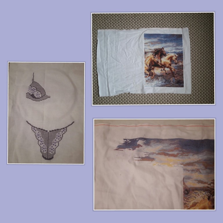 Мои успехи за 2 недели...Начала второй лист схемы с лошадками и второй комплект белья.
